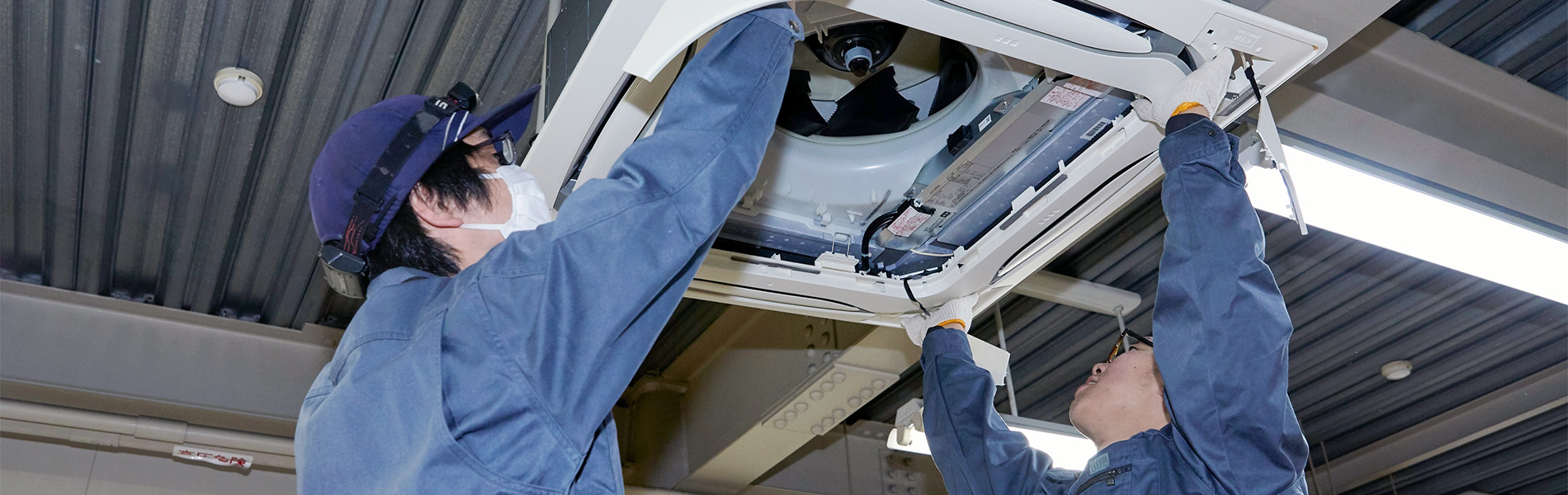 家庭用のルームエアコン・業務用エアコンの取り付け・取り外し・移設のほか、室外機の移動・冷媒ガスの補充・化粧カバーの設置など各種エアコン工事は当社にお任せください。